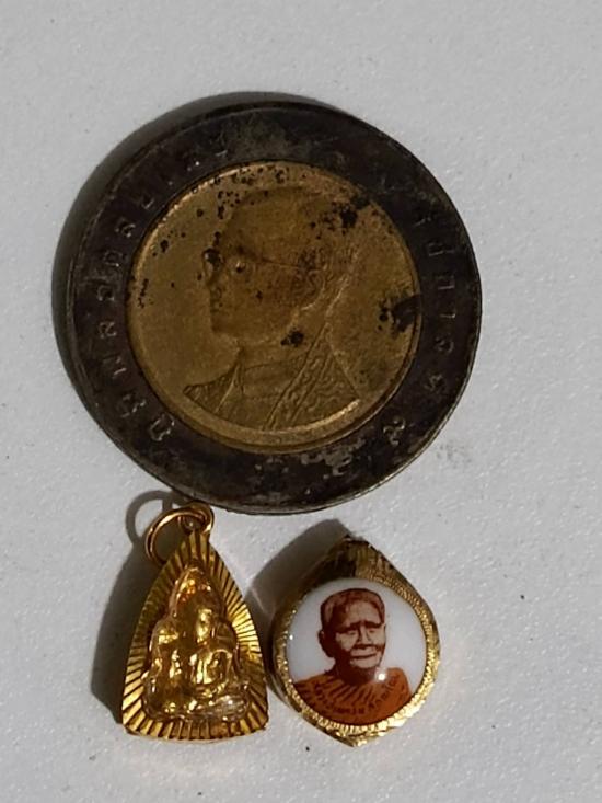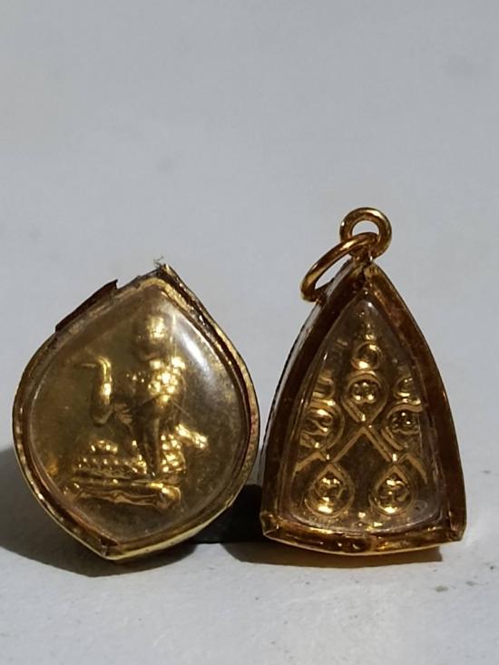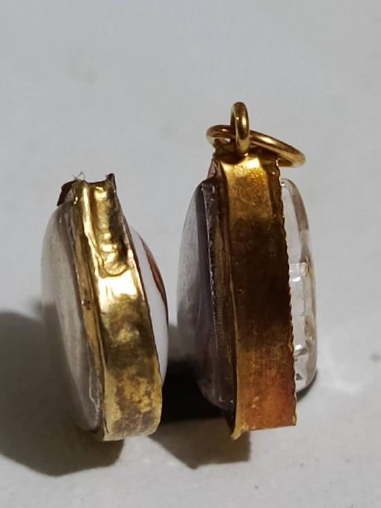 2 ชิ้น [ เลี่ยมทองคำแท้ ] ล็อกเก็ตหลวงปู่แหวน,เหรียญพระพุทธชินราช หลังยันต์ห้า
