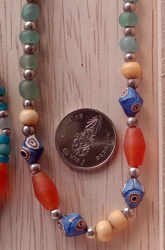 สร้อยลูกปัดทวาราวดี +ปะคำงา+คาเนลเลียน+เม็ดเงินแท้ 925+ลูกปัดโมรอคโค