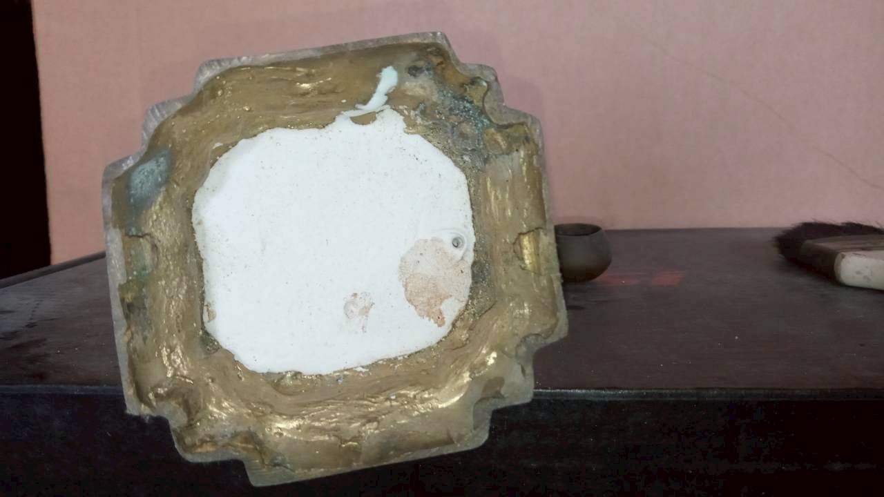 พระบูชา หลวงพ่อบ้านแหลม ยืนถือบาตร เท้ากว้าง 1 นิ้ว ฐาน 3.6 นิ้ว สูง 14 นิ้ว เนื้อทองเหลือง ผืวหิ้ง บาตรถอดได้ ไม่ทราบที่ |