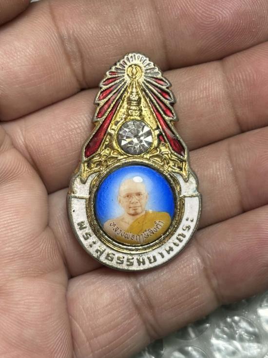 ล็อกเก็ตเข็มกลัดมงกุฎเพชร รุ่นแรก ตัวหนังสือเล็ก (นิยม) หลวงพ่อฤาษีลิงดำ วัดท่าซุง จ.อุทัยธานี ปี2528