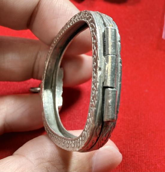 กรอบเงินเก่าแท้สั่งตัด ทรงใส่เหรียญ เสือหลวงพ่อสุดวัดกาหลง แกะลายลึก หัวสิงห์ใหญ่หนา มีหน้ำหนัก