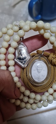 เหรียญหลวงตาม้าหลังท้าวเวสสุวรรณและผงดวงโพธิญาณ พร้อมรอยจารหลวงตาม้า วัดถ้ำเมืองนะประคำขาว เลี่ยมจากวัดพร้อมเชือกร่ม 2 องค์ |