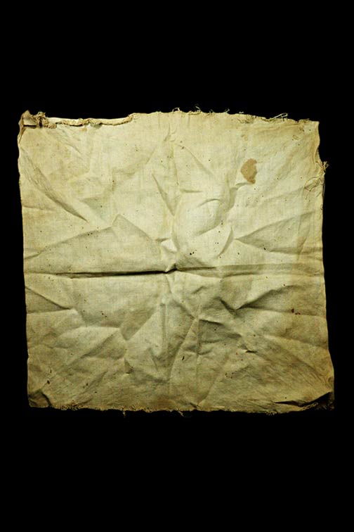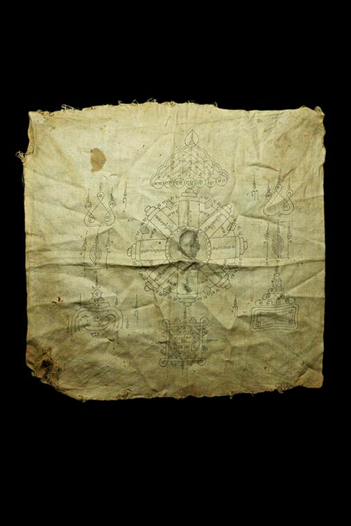 ชื่อพระเครื่อง ผ้ายันต์ ผ้าดิบ รูปถ่ายสกรีน เก่า ไม่ทราบที่ ..ขนาด 11x11 นิ้ว