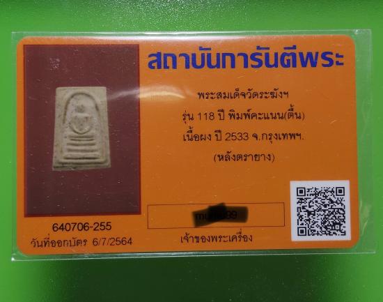 พระสมเด็จวัดระฆัง พิมพ์คะแนน 2533 หลังตรายาง |