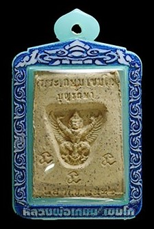 วัดใจ เคาะแรกแดง เลี่ยมเลเซอร์ งานหน้ากาก บอกรุ่น ปีที่จัดสร้าง พร้อมใช้..พระผงหลวงพ่อเกษม หลังพญาครุท รุ่นบุญรักษา ปี2532 งามๆพร้อมขึ้นคอ