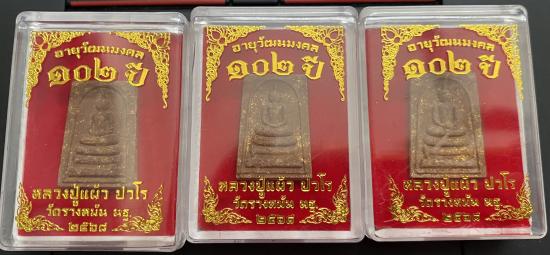 หลวงปู่แผ้ว ปวโร วัดรางหมัน พระผงสมเด็จพิมม์คะเเนน หลังรูปเหมือน ( 3 องค์ )