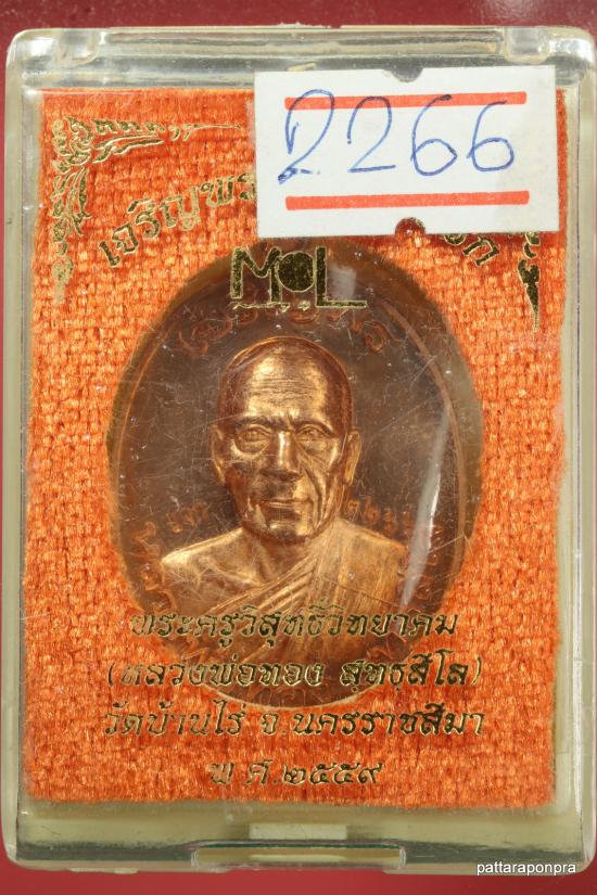 เหรียญหลวงพ่อทอง รุ่นเจริญพรบน ปี 2559 เนื้อทองแดง หมายเลข 2266 |