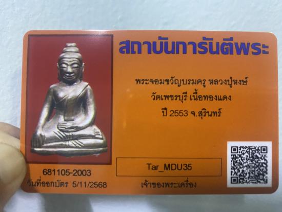 วัดใจครับ พระจอมขวัญบรมครู หลวงปู่หงษ์ วัดเพชรบุรี เนื้อทองแดง ปี2553 จ.สุรินทร์ พร้อมบัตรรับรองจีพระ