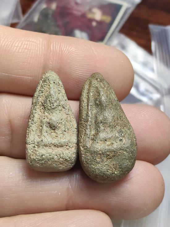 แพ็คคู่ ทีเดียว2องค์ พระนางพญา กรุคลองทรงกระเทียม จังหวัดสุพรรณ เนื้อดินเผา บรรจุกริ่ง เขย่าดัง เป็นพระกรุเก่า บางข้อมูลระบุว่า หลวงปู่เดินหน อิเกสาโร และหลวงพ่อกวย เคยนำพระกรุนี้ไปแจกลูกศิษย์ด้วย |
