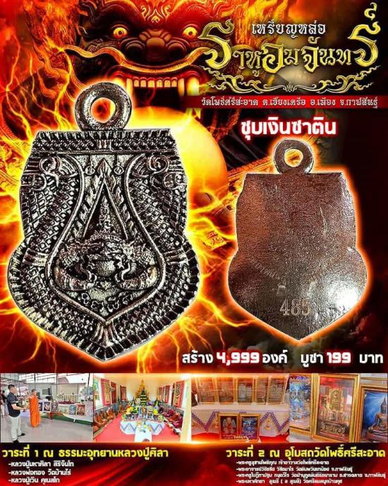 - เหรียญหล่อเสมา ราหูอมจันทร์ หลวงปู่ศิลา วัดโพธิ์ศรีสะอาด วัดจัดสร้างเอง เนื้อ ชุบเงินซาติน No 488