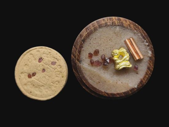พญายูงคำ รุ่นแรก เนื้อมวลสารเก่าครุบาออปัดทอง และตลับไม้สีผึ้งเนื้อหอม รังผึ้งร้าง ขวางเดือนขวางตะวัน รุ่นแรก ฝังอิ่น ตะกรุด ในเมตตาบารมี เจ้าปู่จั่นต่า กาวิสาละ ครูบากฤษดา เมตตาเษก