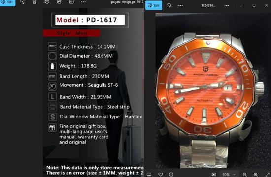 ???...PAGANI DESIGN PD1617 เรือนที่ 486/500 หน้าส้ม แซลม่อน..???