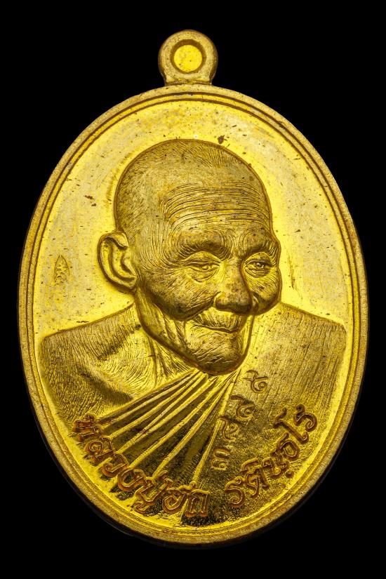 เหรียญไตรมาส หลวงปู่ฮก ที่ระลึกสร้างอุโบสถ ปี57 เนื้อกะไหล่ทอง ตอกโค๊ด เลขสวย 3899 |