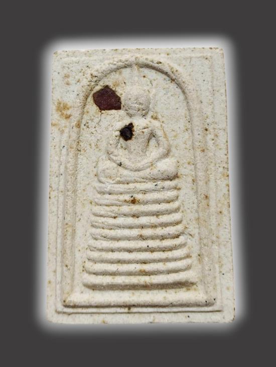 A5044.พระสมเด็จเนื้อผง หลังพระประจำวัน ฝังพลอย ไม่ทราบที่ เคาะเดียวเเดง |