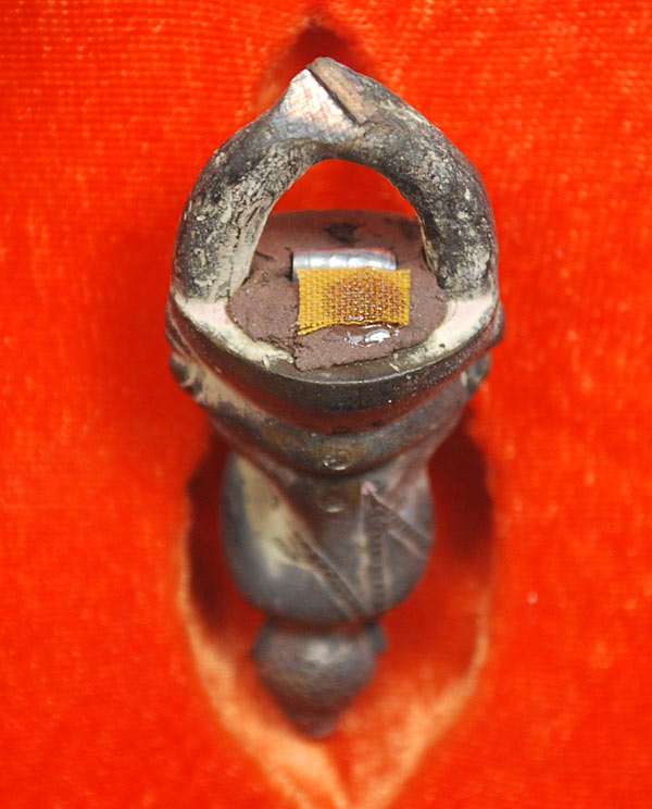 พระกริ่งมหาลาภปทุมสุริยะวงศ์ องค์นำฤกษ์ หลวงปู่เตื่อง (ท่านก๋งเตื่อง) วัดคลองจาก จ.ตราด เนื้อนวะก้านช่อ อุดผง ฝังตะกรุดติดจีวร หมายเลข 60