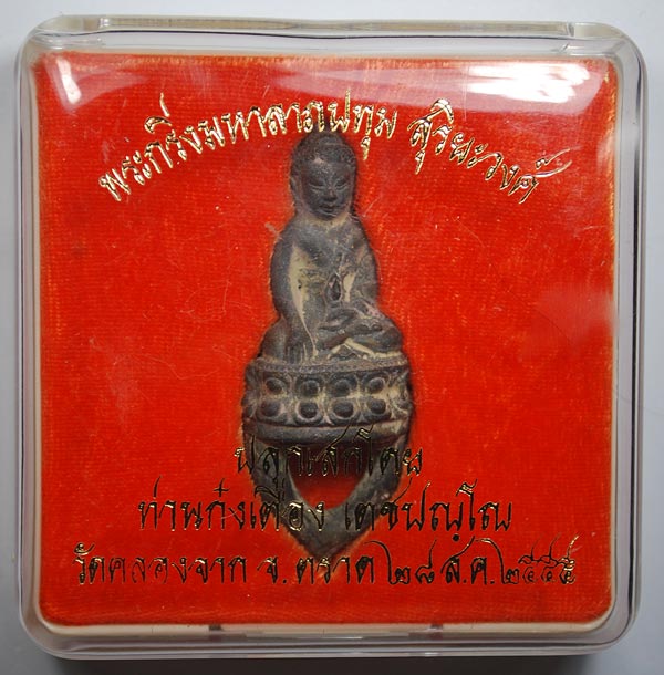 1 ใน 89 องค์นำฤกษ์ พระกริ่งมหาลาภปทุมสุริยะวงศ์ หลวงปู่เตื่อง (ท่านก๋งเตื่อง) เตชปญฺโญ วัดคลองจาก จ.ตราด เนื้อนวะก้านช่อ อุดผง ฝังตะกรุดติดจีวร หมายเลข 60 พระกริ่งมหาลาภปทุมสุริยวงศ์ รุ่นแรกท่านก๋งเตื่อง วัดคลองจาก จ.ตราด เนื้อนวะโลหะองค์นำฤกษ์ ตัดจากช่อฝังตะกรุดติดจีวร หมายเลข ๖๐ ดูแลการจัดสร้างโดย อ.ชินพร สุขสถิตย์ จัดสร้างน้อยเพียง ๘๙ องค์ ปี 2555 สภาพสวยกล่องเดิมครับ