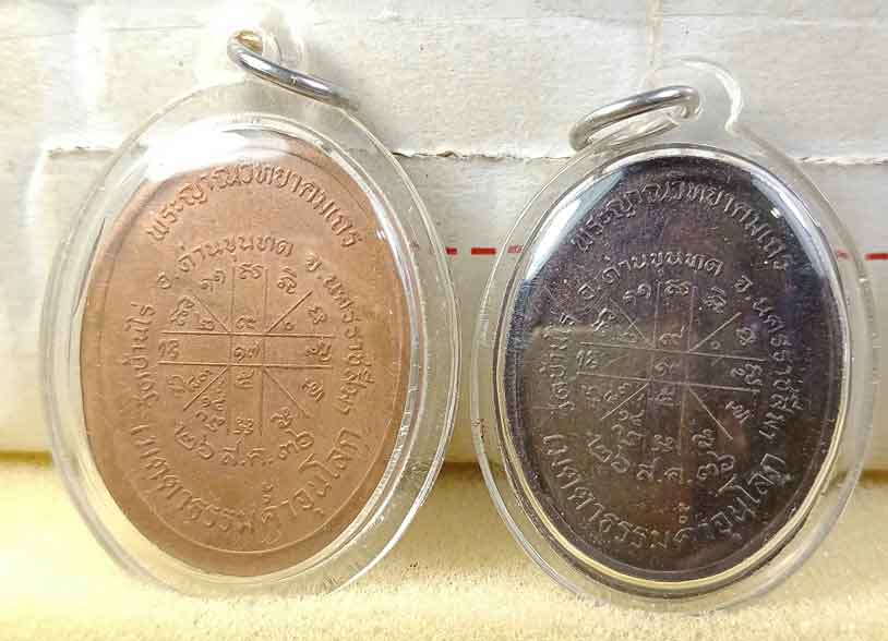 เหรียญหลวงพ่อคูณ รุ่นเจริญสุข 2 องค์ + เหรียญหลวงพ่อคูณ รุ่นทรัพย์เพิ่มพูน ธนาคารกรุงไทยสร้าง ปี 37 เนื้อนวะ ตอก 2 โค๊ต