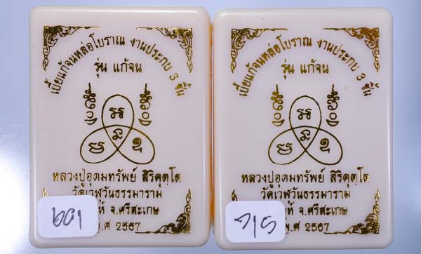 งานหล่อ ประกบ3 ชิ้น ข้างในมีผงงาช้างบด มวลสาร เขย่าดูมีมวลสาร สวยๆ หลวงปู่มหาศิลาร่วมเศก แบ่งเบาๆ ออฟชั่นเนื้อจะมีหลายๆ เนื้อหรือลงยาร่วมด้วย