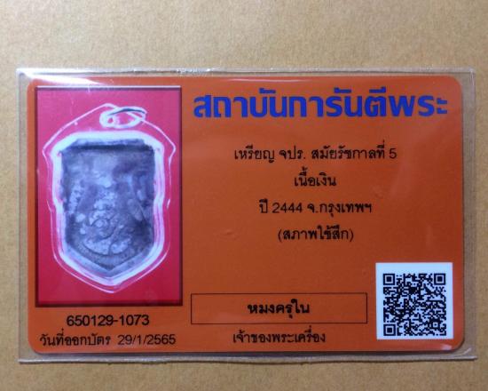 เหรียญ จปร ปี2444 (หลวงปู่เอี่ยมวัดหนังปลุกเสก พร้อมบัตร G เคาะเดว |