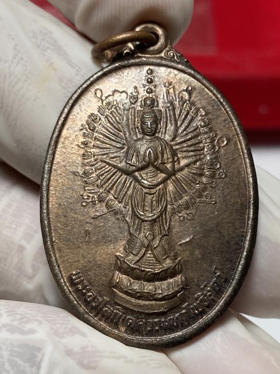 เหรียญพระอวโลกิเตศวรฯพระแม่กวนอิมพันมือ วัดประตูป่อง หลวงพ่อเกษม เขมโกอธิษฐานจิต ปี 2536 เนื้อนวโลหะ