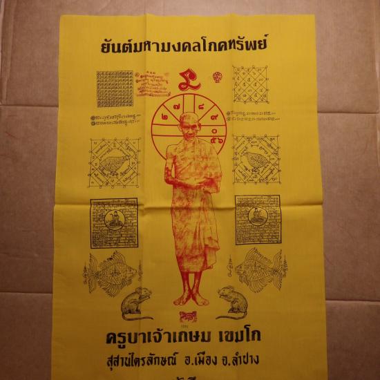 ผืนใหญ่......(ขนาด 22 X 33 นิ้ว) ผ้ายันต์มหามงคลโภคทรัพย์ หลวงพ่อเกษม เลข 1251 ..68.11.26