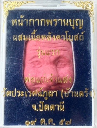 หน้าพรานบุญ รุ่น กฐิน 57 พ่อแก่เจ้าแสง วัดบ้านตรัง เนื้อผสมกระเบื้องหลังคาโบสถ์ ปี 2557 No.11038 พร้อมกล่องเดิมจากวัด