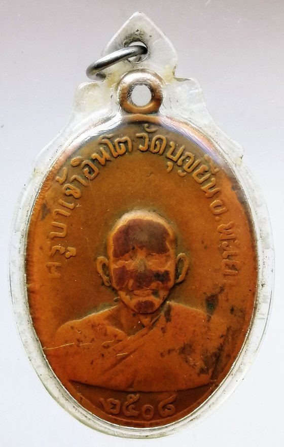 เหรียญรุ่นแรก ครูบาอินโต วัดบุญยืน จ.พะเยา ขีดเดียว ปี08 สร้างน้อย หายาก สภาพใช้บูชาพุทธคุณ เลี่ยมพลาสติกยุคเก่าเดิม ๆ