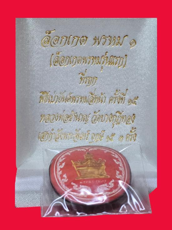 ล็อคเกต จัมโบ้ ฉากแดง พระพรหมบรมครู ด้านหลังอุดมวลสาร ตะกรุดทองคำ และ ตะกรุดเงิน กล่องเดิม (ขนาดสูง 4.5 ซ.ม.) หลวงพ่อชำนาญ วัดบางกุฎีทอง พิธีงานเป่ายันต์พรหมสี่หน้า ครั้งที่ 15 ปี 2558 |