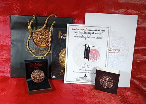 ชื่อพระเครื่อง เหรียญสุริยะภูมิจักรวาล เนื้อบรอนซ์ อุปกรณ์ครบ ผลงานอาจารย์ถวัลย์ ดัชนี หมายเลข 308