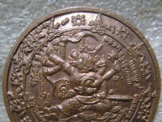 วัดใจเคาะเดียว......100.......เหรียญหนุมานออกศึก รุ่นแรก พระอาจารย์เดช วัดช้าง จ.นครนายก ปี53 ตอกโค๊ต ช้าง ด้านหลัง |