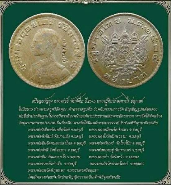 เหรียญบาทขวัญถุง ตอกโค๊ต "หลวงพ่ออี๋" ออกที่วัดสัตหีบ จ.ชลบุรี ปี พ.ศ.2515 ที่ระลึกในงานนำรูปหล่อเข้าประดิษฐานในวิหาร ปลุกเสกพิธีใหญ่