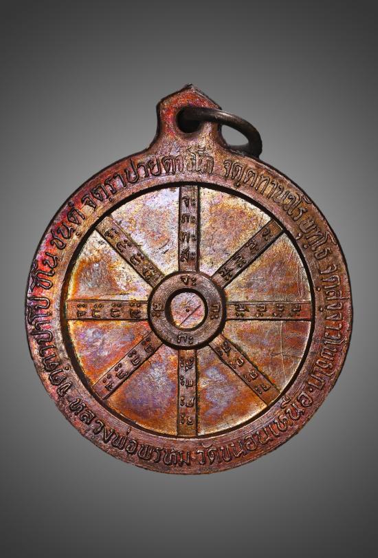 เหรียญ ธรรมจักรมหายันต์ ( ชูดวง ) " หลวงพ่อพรหม วัดขนอนเหนือ " จ.อยุธยา ปี 2530 เนื้อทองแดง หายากมาก รุ่นนี้หลวงพ่อท่านตั้งใจปลุกเสก ลงคาถาและอักขระยันต์เพื่อชูดวง หนุนชะตาชีวิต เป็นเหรียญที่หลวงพ่อพรหมมอบหมายให้นักธุรกิจด้านอสังหาริมทรัพย์ไปจัดสร้างเนื่องจากได้ประสบความสำเร็จด้านธุรกิจตามที่หลวงพ่อเมตตาชี้แนะ
