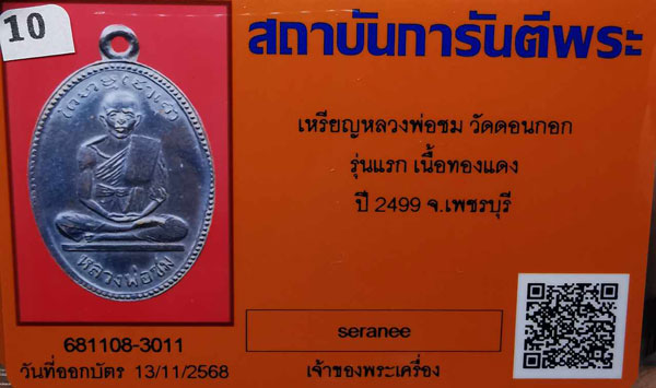 เหรียญหลวงพ่อชม วัดดอนกอก รุ่นแรก เนื้อทองแดง ปี2499 จ.เพชรบุรี + บัตรG-pra สภาพเดิมค่ะ สภาพตามรูปทุกประการค่ะ