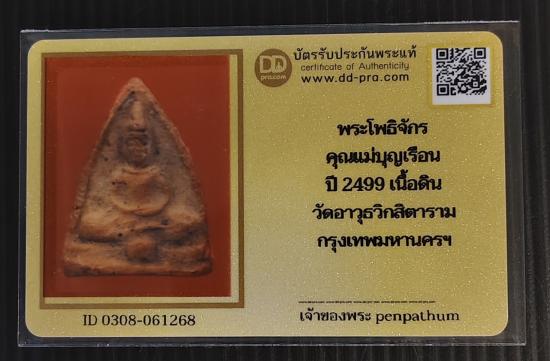 พระโพธิจักรแม่ชีบุญเรือน เนื้อดิน ปี2499 วัดอาวุธฯ กรุงเทพฯ+บัตร