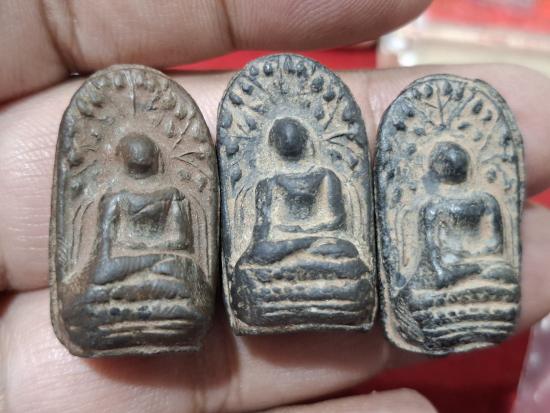 (เคาะเดียวแดง) พระคงลำพูน ด้านหลังปั๊มจมรูปเจดีย์ (เปิดเหมา 3 องค์)ไม่ทราบออกวัดไหน |