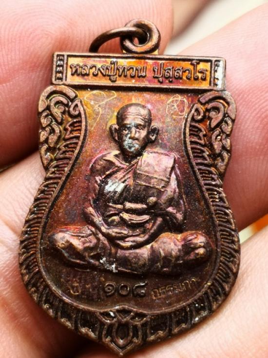 เหรียญเสมาหลวงปู่ทวน ปุสฺสวโร วัดโป่งยาง อ.แก่งหางแมว จ.จันทบุรี 108 ปี พ.ศ.2559 จารยันต์ เนื้อทองแดง สภาพตามรูป ราคาเบาๆ |