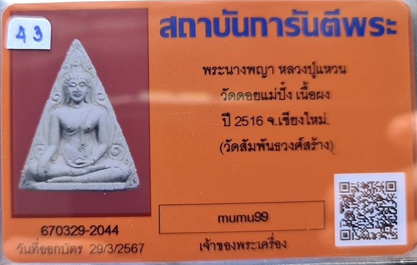 @## พระนางพญา.. ลป.แหวน วัดดอยแม่ปั๋ง จ.เชียงใหม่ (พิธีปลุกเสกใหญ่ใหญ่ วัดสัมพันธวงศ์ กทม.จัดสร้าง ) ปี2516 เนื้อผง พร้อมบัตรรับรอง สภาพสวยมาก รับประกันความแท้ตลอดชีพ พิธีปลุกเสกในวาระแรก ปี 2516 -วัต |