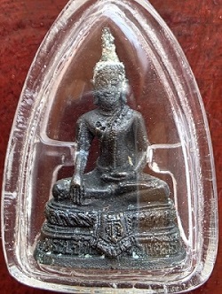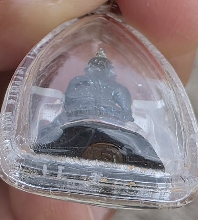 พระรูปหล่อลอยองค์ ฐานอุดกริ่งมงคล หลวงพ่อพระเจ้าองค์ตื้อ วัดศรีชมภูองค์ตื้อ จ.หนองคาย ปี 2539 เลี่ยมเงิน