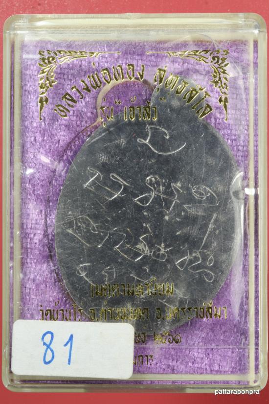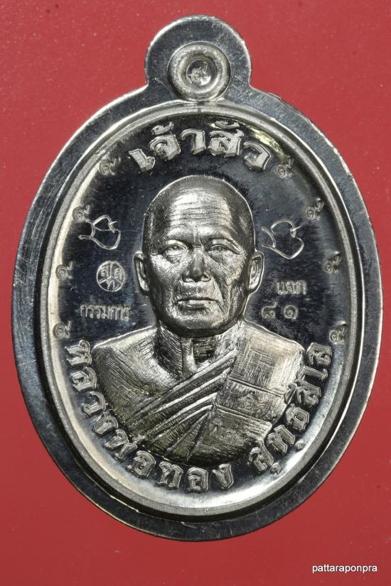 เหรียญหลวงพ่อทอง รุ่นเจ้าสัว ปี 2561 เนื้อตะกั่วไม่ตัดปีกหลังเรียบ มีจาร หมายเลข 81