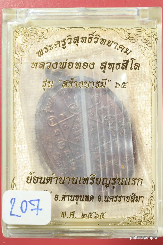 เหรียญย้อนยุครุ่นแรก หลวงพ่อทอง รุ่นสร้างบารมี ปี 2565 เนื้อนวะ มีจาร หมายเลข 207