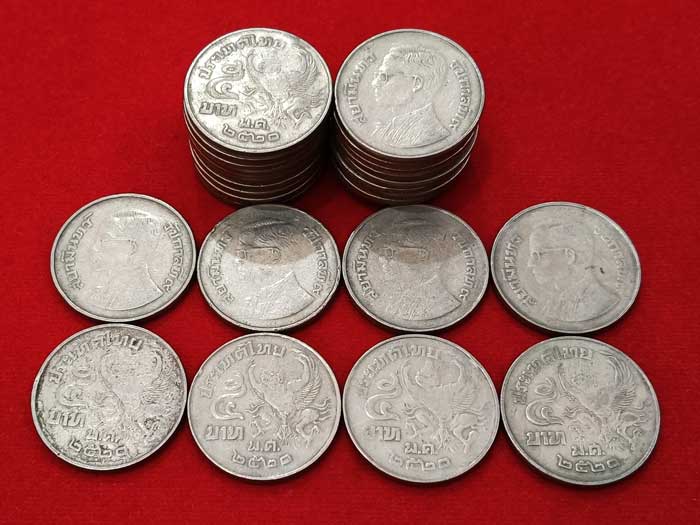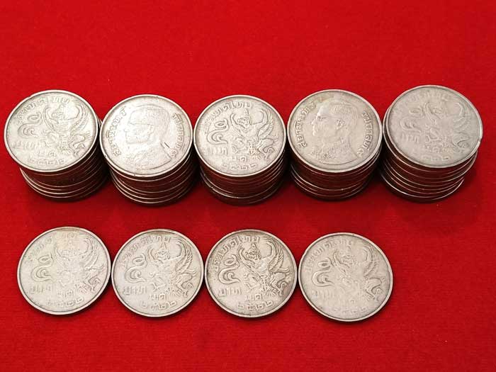 วัดใจ 100 เดียวแดง ++ เหรียญ 5 บาท หมุนเวียนหลังครุฑ ปี2520 (28 เหรียญ) + ปี2522 (54 เหรียญ) สภาพผ่านใช้งาน