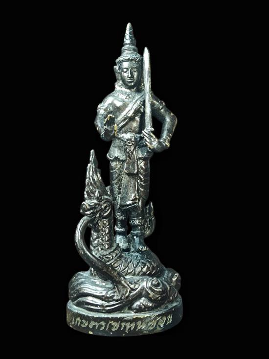 พระพิรุณทรงนาคจำลอง เกษตรเขาหินซ้อน จัดสร้างปี 2547 เนื้อโลหะ ขนาดบูชาสูง 4 นิ้ว