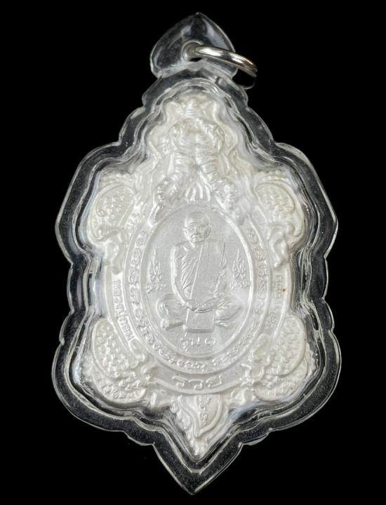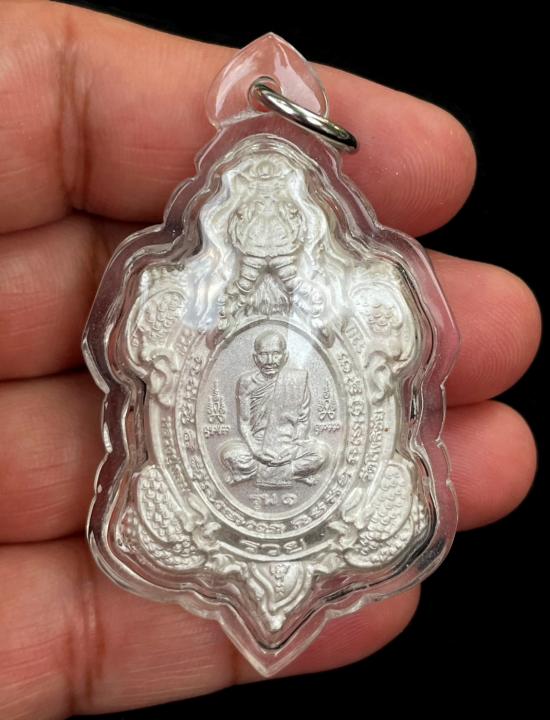 วัดใจ เหรียญพญาเต่ามังกร รุ่นรวยรวยรวย หลวงปู่กลม วัดโพธิ์ชัย จ.นครพนม เนื้อกะไหล่เงิน เลข 96 เลี่ยมพลาสติก สวยๆ |