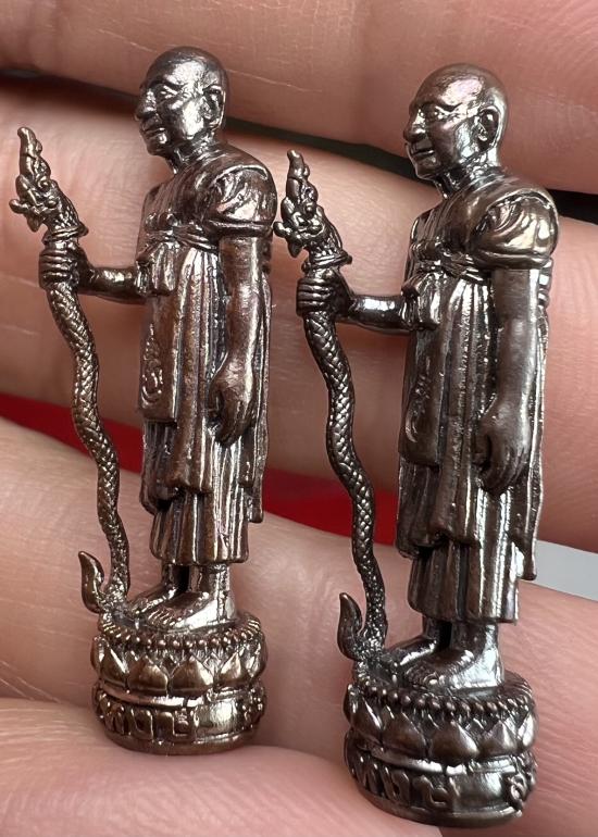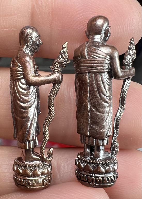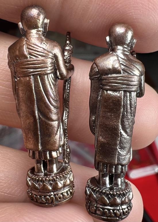 รูปหล่อยืนถือไม้เท้า อุดผงใต้ฐาน หลวงปู่หงษ์ พรหมปัญโญ สุสานทุ่งมน จ.สุรินทร์ ปี 2555 D2 |