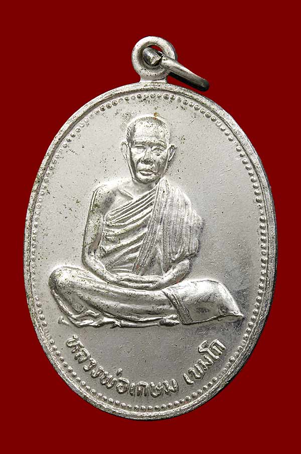 วัดใจเคาะเดียวแดง เหรียญรุ่นพระไตรปิฎก หลวงพ่อเกษม เขมโก สำนักสุสานไตรลักษณ์จ.ลำปาง ปี 2528 เนื้อกะไหล่เงิน สวยเดิม |