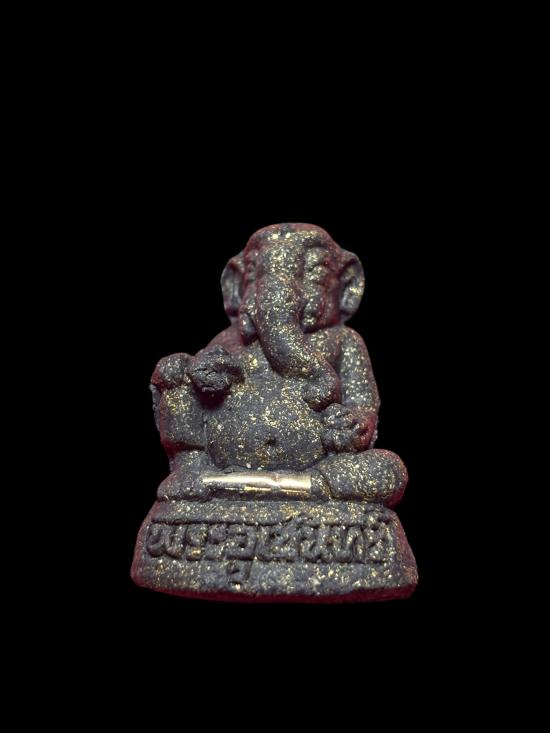 พระอุเชนทร์ (พระพิฆเนศวร) พ่อท่านคล้าย วาจาสิทธิ์ วัดธาตุน้อย จ.นครศรีธรรมราช เนื้อมหาว่านดำ โรยผงตะไบทอง ฝังตะกรุดเงิน1ดอก เคาะเดียวครับ