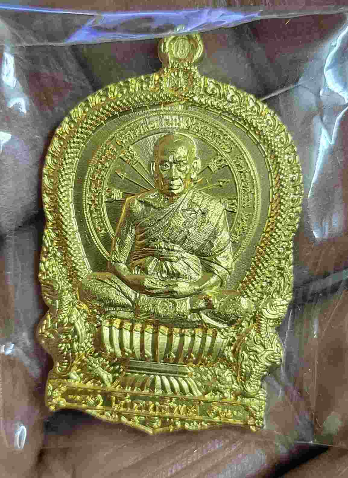 เคาะเดียวแดง เหรียญหลวงพ่อพัฒน์ รุ่นไตรมาส 63 พิมพ์นั่งพาน เนื้อชุบทองโบราณ |