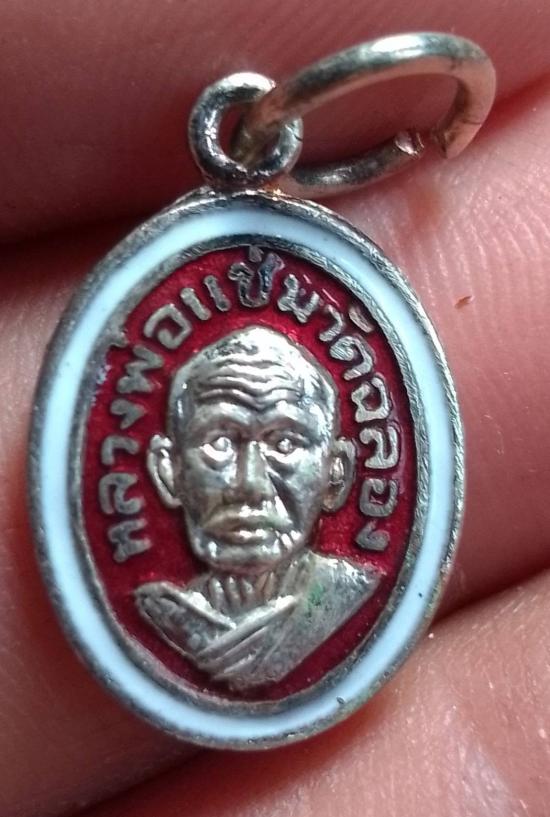 เคาะเดียวแดง.....เม็ดแตง หลวงพ่อแช่ม วัดฉลอง ภูเก็ต กะไหล่เงินลงยา ปี 2524 |
