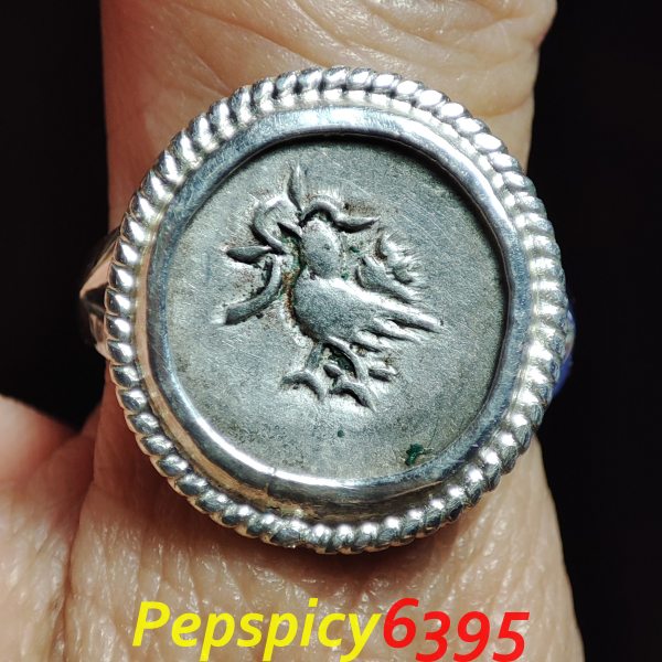*เคาะแรกแดง* แหวนเงินแท้ฝังเหรียญเงินโบราณตราหงส์คาบเหยื่อ ขนาด 1 เฟื้อง (ไซส์ 59) รับประกันตามกฎเวป