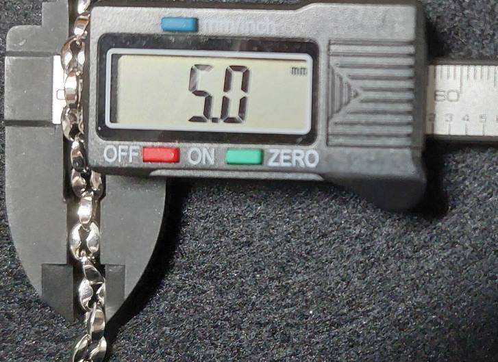 สร้อยสแตนเลสลายเมล็ดกาแฟ ยาว 26 นื้ว พร้อมสปริงก้ามปูสแตนเลสหมุนได้ เมล็ดกาแฟกว้าง 5 มม. หนา 2.4 มม. |